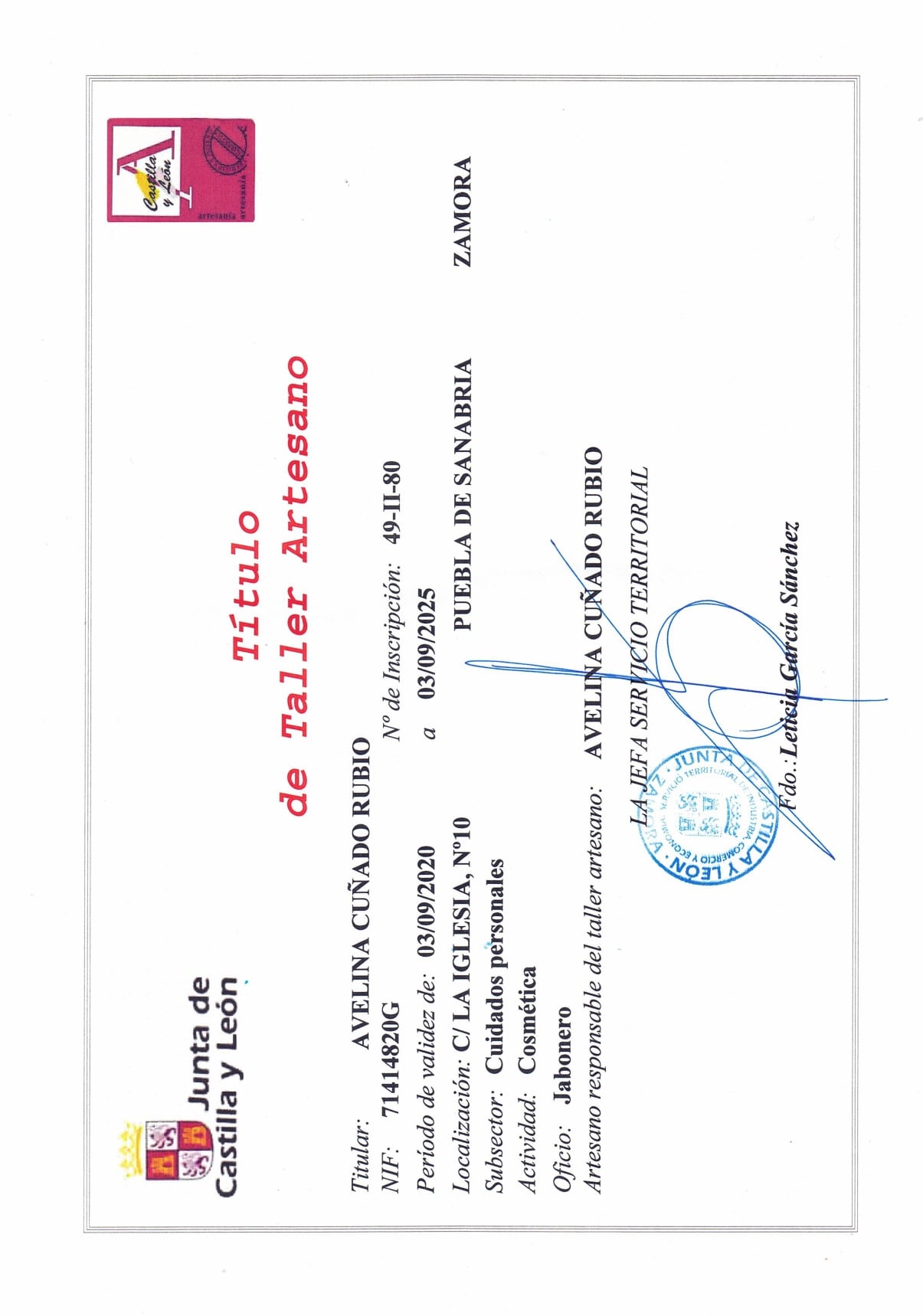 10. Certificado Título de Taller Artesano expedido por la Junta de Castilla y León